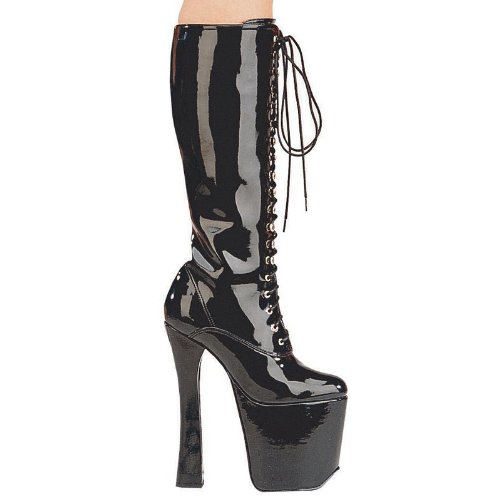 7 1/2 Inch Womens Sexy Knee High Boots Platform Boots Evening Boots Lace-Up Side Zip Black Size: 8