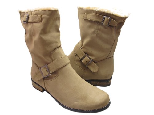 ## Andres Machado Women's Beige Nubuck Wool Boots AM337