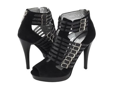 Calvin Klein Women's Danica Platform Peeptoe Bootie,Black Suede,8.5 M US