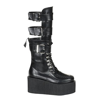 DEMONIA,Women's,CreepersCREEPER-810, 3 1/4" P/F Blk Pu 3 Buckled Calf Creeper BootAs designer shoes, these are often narrower and tighter than usual.Take this into consideration when you choose your size, especially if you are half size.