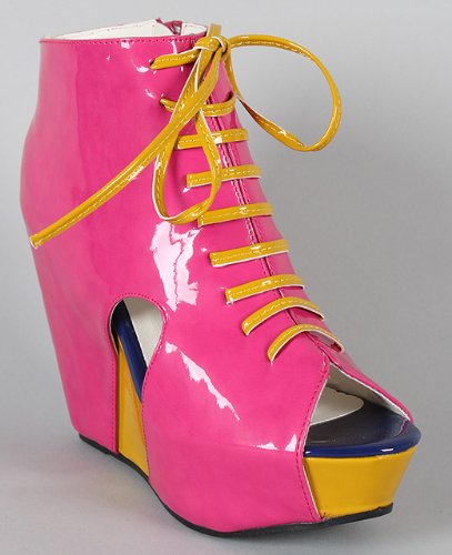Hot and fabulous Pink Bootie! Featuring almond toe front, scooped front vamp. and wedge heel. Finished with padded insole and side zipper closure for easy on/off. Heel: 4.75"(Platform 1.75") New: In Original BoxSKU: Zena42C Hot Pink 5.5 wo5.5zz