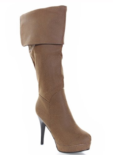 Kick off the season with these stylish boots. Features round toe front, stitching details, pirate boot design, platform, and stiletto heel. Side zipper closure, cushioned insole and smooth interior lining for all day comfort. Unfold the cuff for two different looks!