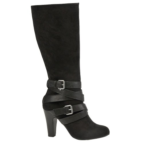 • The perfect boot to take you through the season in style • Microfiber fabric upper with strap and buckle accents • Full-length zipper closure for easy on/off • Lightly padded footbed • Manmade sole • 3-1/4" heel height