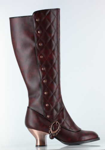 Women's Hades Victoriana Boot Heeled Platform- Here is a Steampunk Victorian influenced knee high boot with a quilted spat look. The crepe welt design with a metal heel, button rivets embellishments and flame shaped buckles.- The heel is 2.5 inches- Versatile and compliments many an outfit.- Inner Zipper for ease of wear - New: In Original Box