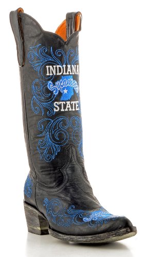 Indiana State University Sycamores Women's Cowboy boots are sure to make an impression at any Sycamores event, whether it's a game, reunion or business meeting with Indiana State alumni. Wear these ladies Indiana State boots with pride and show the world that you stand with the Sycamores! Durable and handsome, these Indiana State boots, bring your A-game to every occasion.- Style ISU-L047-1- Officially Licensed Product- Genuine Leather- Embroidered Stitching- 13" Leather Shaft- 2" Cowboy Boot Heel- Snip Toe Condition: New: In Original Box