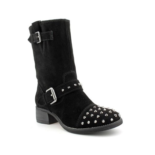 Morph into a sexy, rockin' fashionista with the Kelsi Dagger Ranger boots. These boots feature a suede upper with edgy, spike stud accents and dual buckle straps. The block heel lifts the rubber outsole for a comfortable boost.