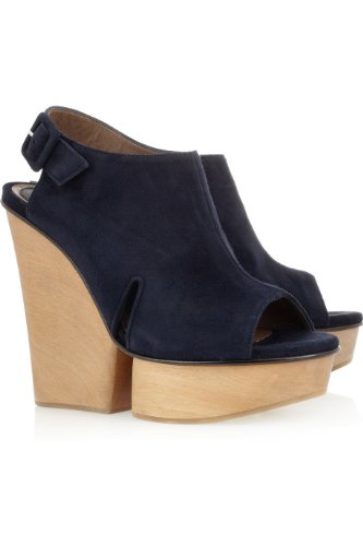 Marni Sz 39.5 9.5 9 Suede Platform Wedges Shoes in Navy