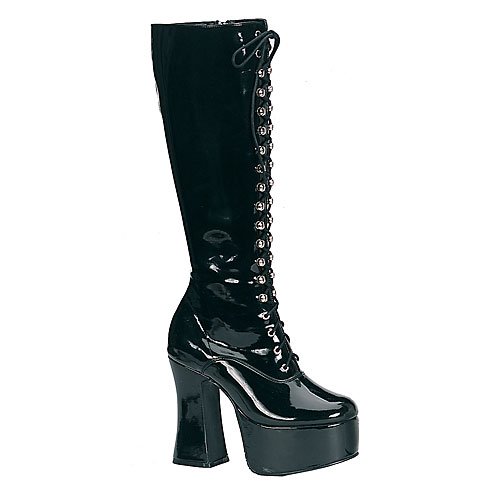 SLUSH-214, 4 3/4" Lace-up P/F Blk Pat Knee Boots(Black Pat,9)