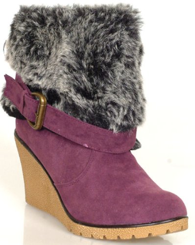 Set the fashion world on fire with these smokin' boots! Faux-Fur upper with buckled strap design. Stylish wedge heel. Lightly cushioned fabric footbed. Heel: 3" Total Height: 8" Circumference: 12" New: In Original BoxSKU: Sasha-2 Purple 7.5 wo7.5zz RIDER-STYLES Color: PurpleCode: Sasha-2 Purple